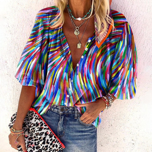3D Butterfly Print Long Sleeve V-neck Loose Top