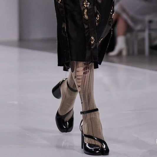 8CM Split-toe Shoes Trotter Word Buckle High Heels