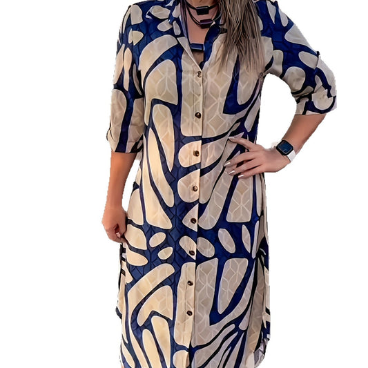 Womens Stylish And Elegant Striped Long-Sleeve Cardigan Long-Button Front Dress