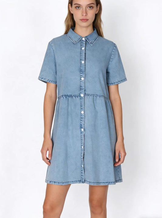 Womens Washed Mid-Waist Lapel Short-Sleeve Dress