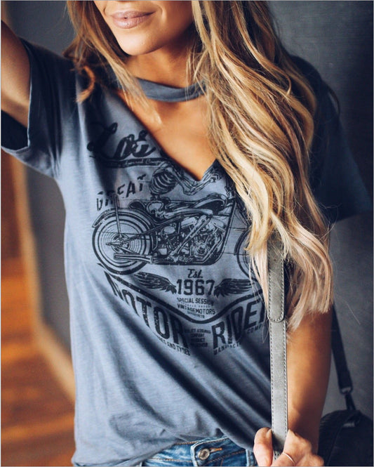 European And American Fashion V-neck Short Sleeve Printed Top