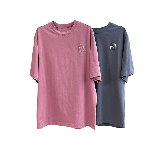Casual Sports Style Beaded Round Neck Letter T-shirt With Loose Shoulders