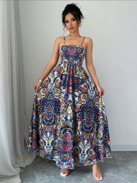 Mid Length Womens Printed Slip Dress