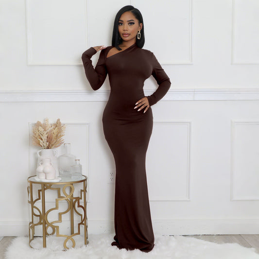 Womens Solid-Color Long-Sleeve Slim-Fit Dress